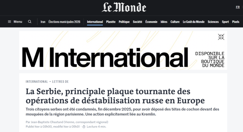 Three Serbian citizens were sentenced at the end of December 2025 for placing pigs’ heads in front of mosques in the Paris region. An action explicitly linked to the Kremlin.