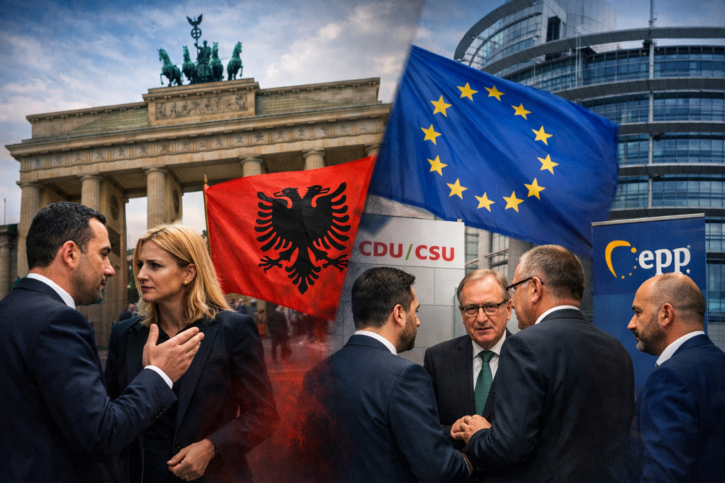 Gazment Bardhi, Jorida Tabaku, and Klevis Balliu flew to Berlin on Wednesday and spent a day telling German officials that Albania is failing. They said it to two CDU/CSU parliamentarians. They said it to the German Foreign Ministry’s Western Balkans director. Belind Këlliçi repeated it in Brussels the same day, to EPP colleagues. By their own readouts, the message was identical in every room: corruption unchecked, elections unfree, government shielding the corrupt from accountability. They were not wrong about any of it. That is precisely the problem.